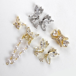 Nueva joyería de uñas oro plata aleación arco flor colgante pegatinas de uñas circón diamante decoraciones encanto